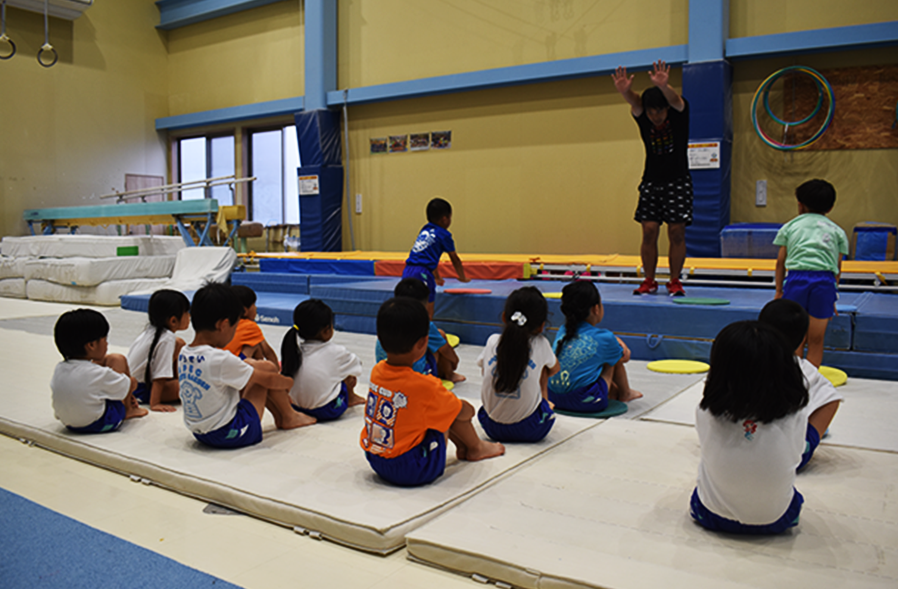 体操教室に入会し、今では逆上がりや自分の身長よりも高い跳び箱を飛べるようになりました!
